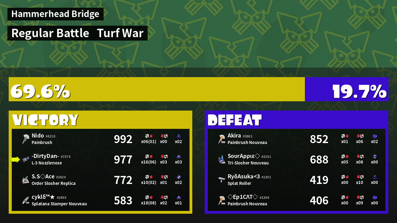| Medals | #1 Popular Target #1 Enemy-Base Inker #1 Enemy Splatter | ||