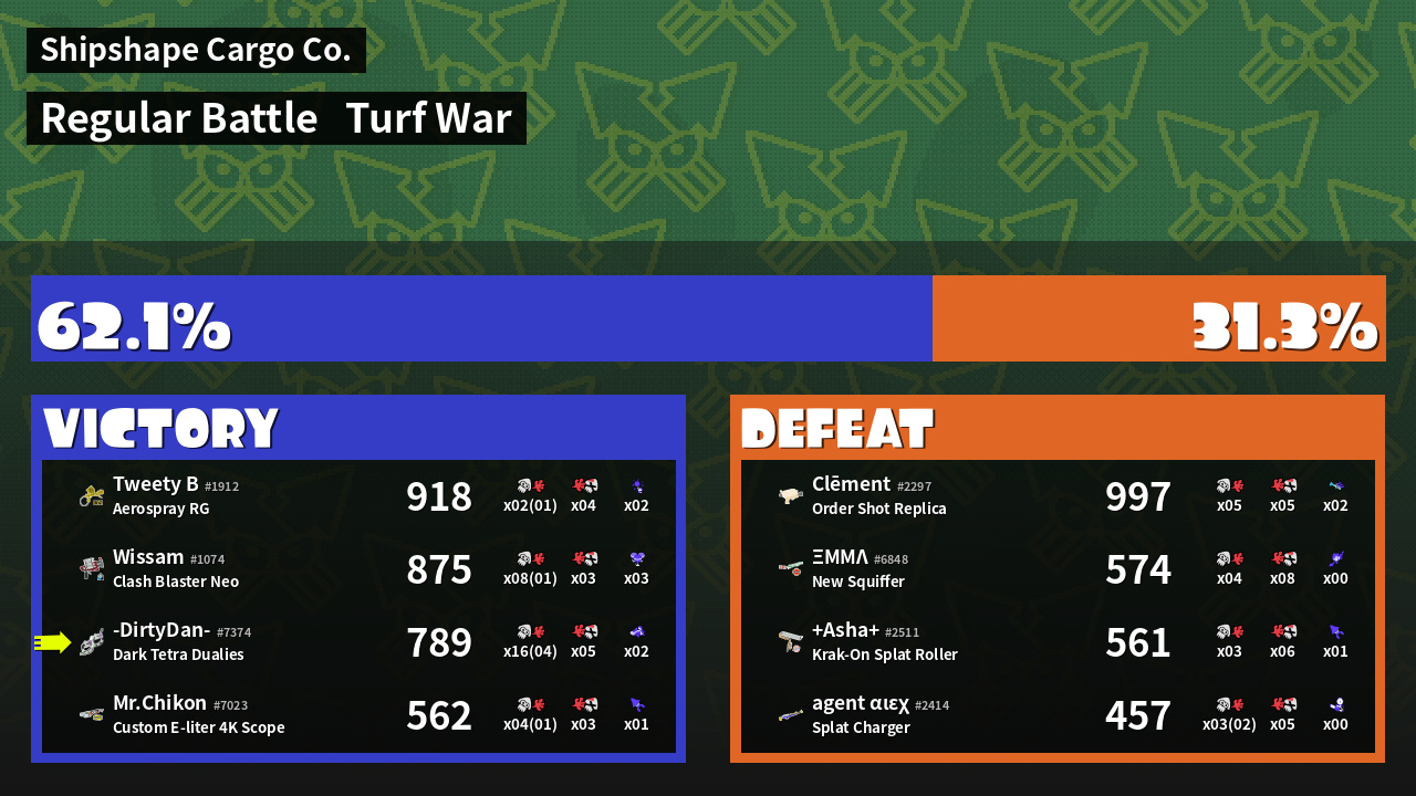 | Mode | Turf War - Regular Battle | ||