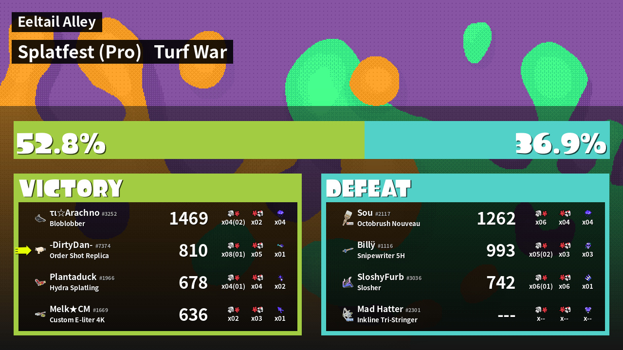 | Mode | Turf War - Splatfest (Pro) | ||