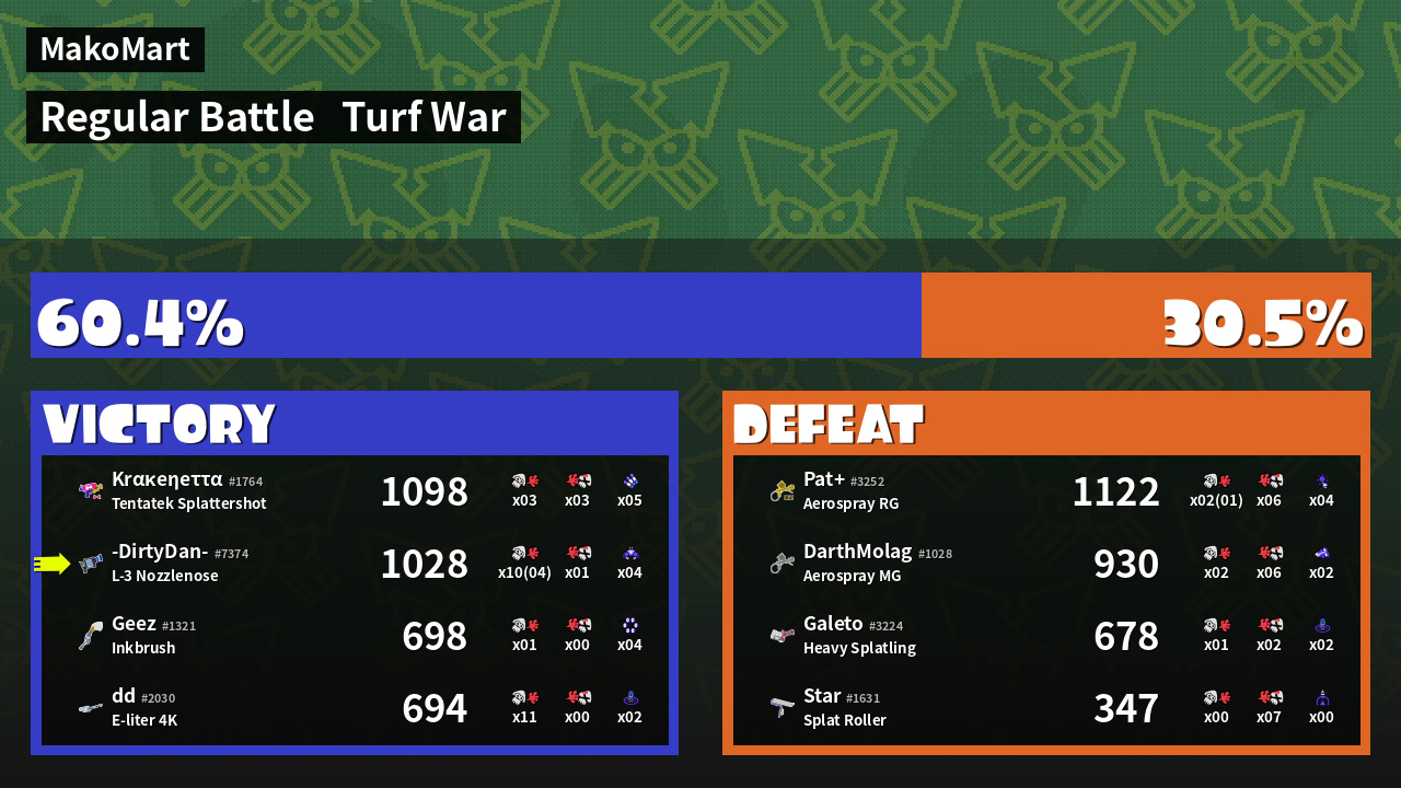 | Mode | Turf War - Regular Battle | ||