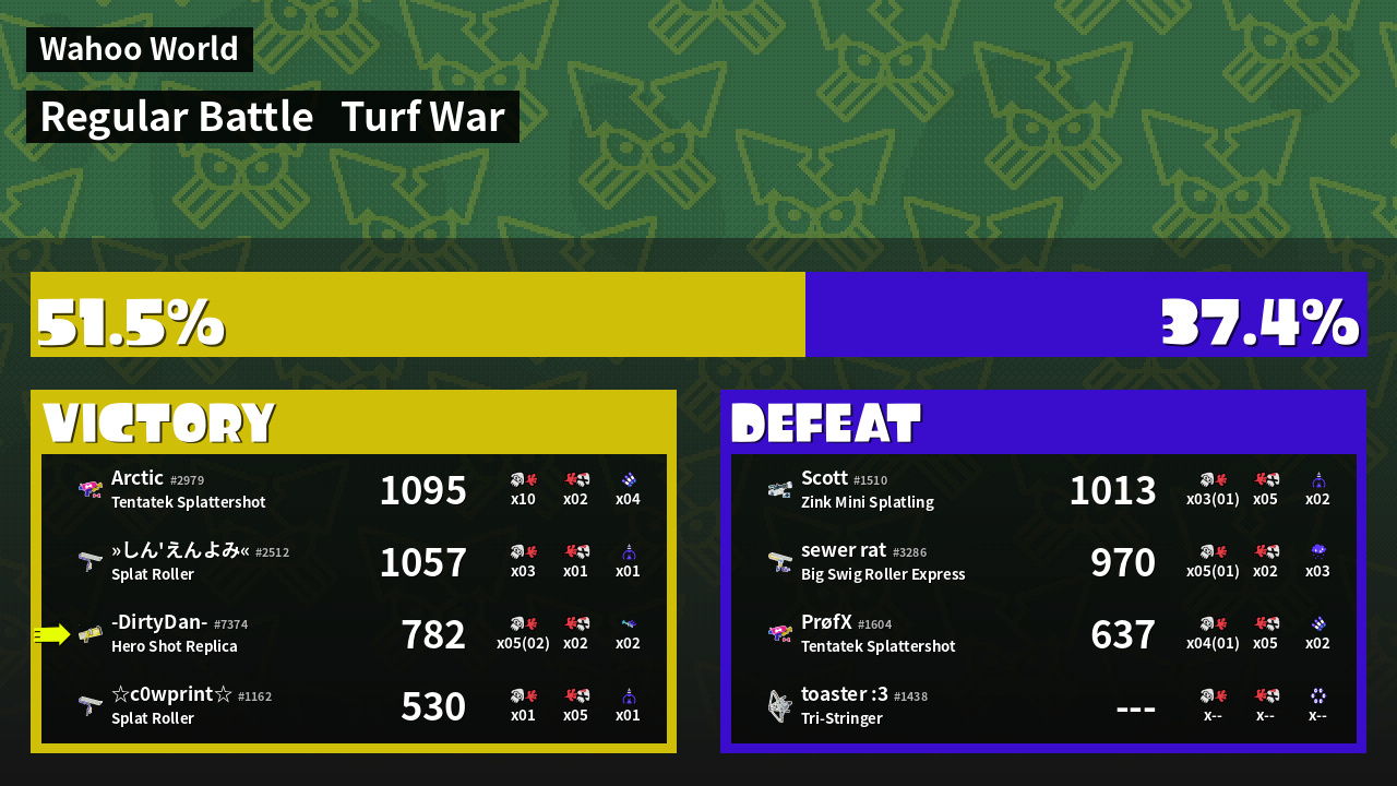 | Mode | Turf War - Regular Battle | ||