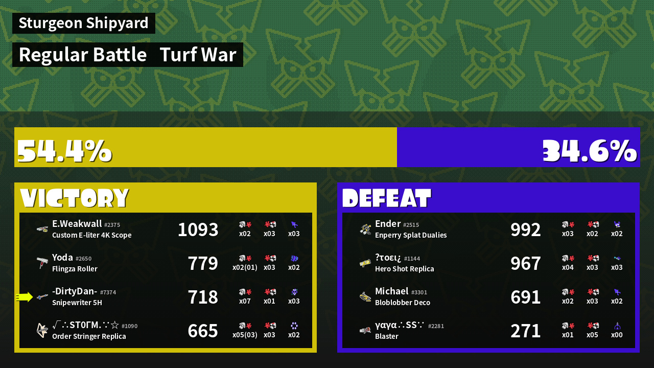 | Mode | Turf War - Regular Battle | ||