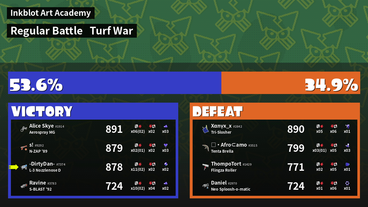 | Mode | Turf War - Regular Battle | ||