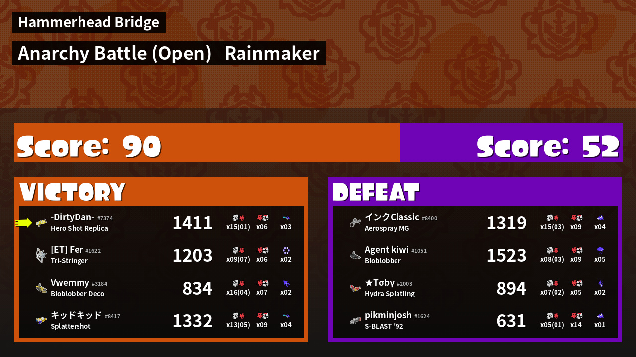 | Mode | Rainmaker - Anarchy Battle (Open) | ||