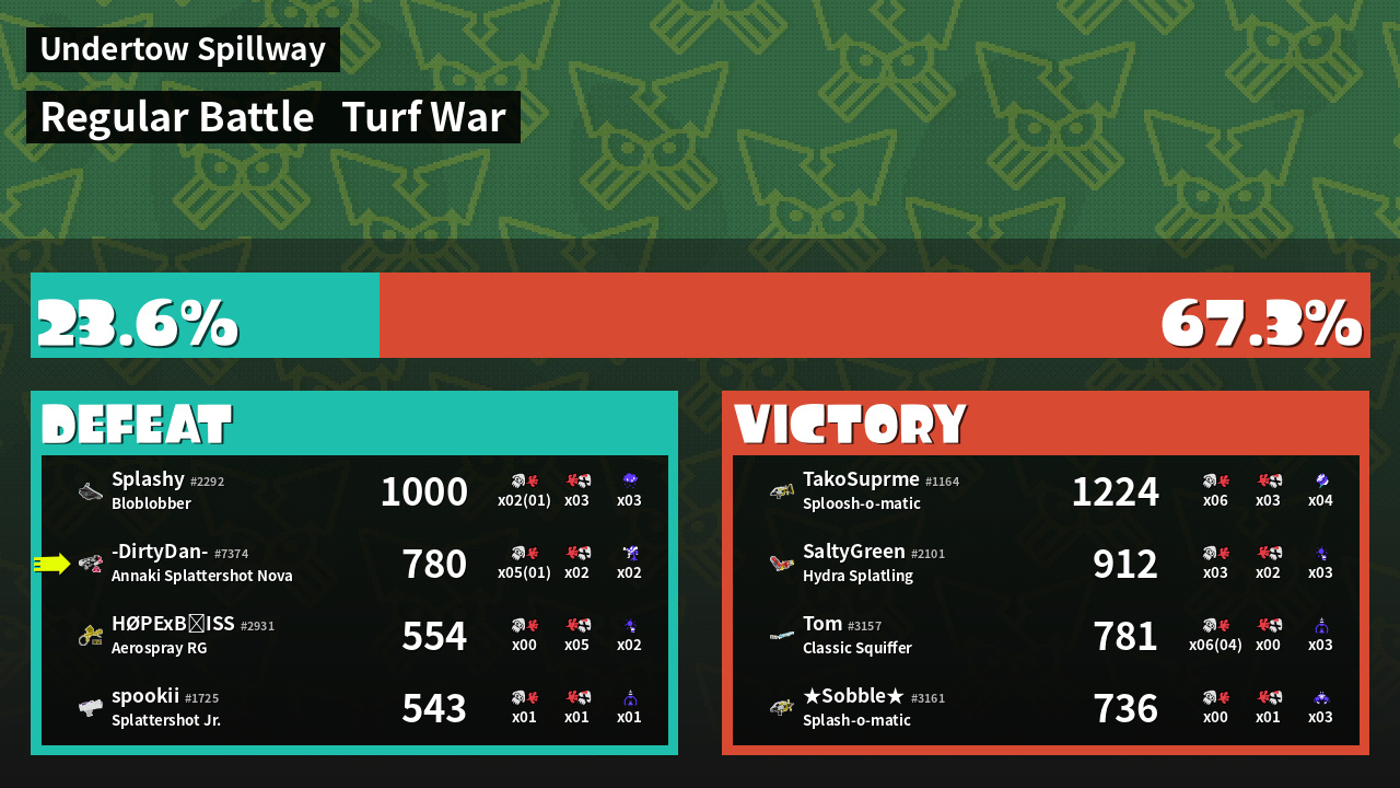 | Medals | #1 Overall Splatter #1 Enemy Splatter #1 Splat Assister | ||