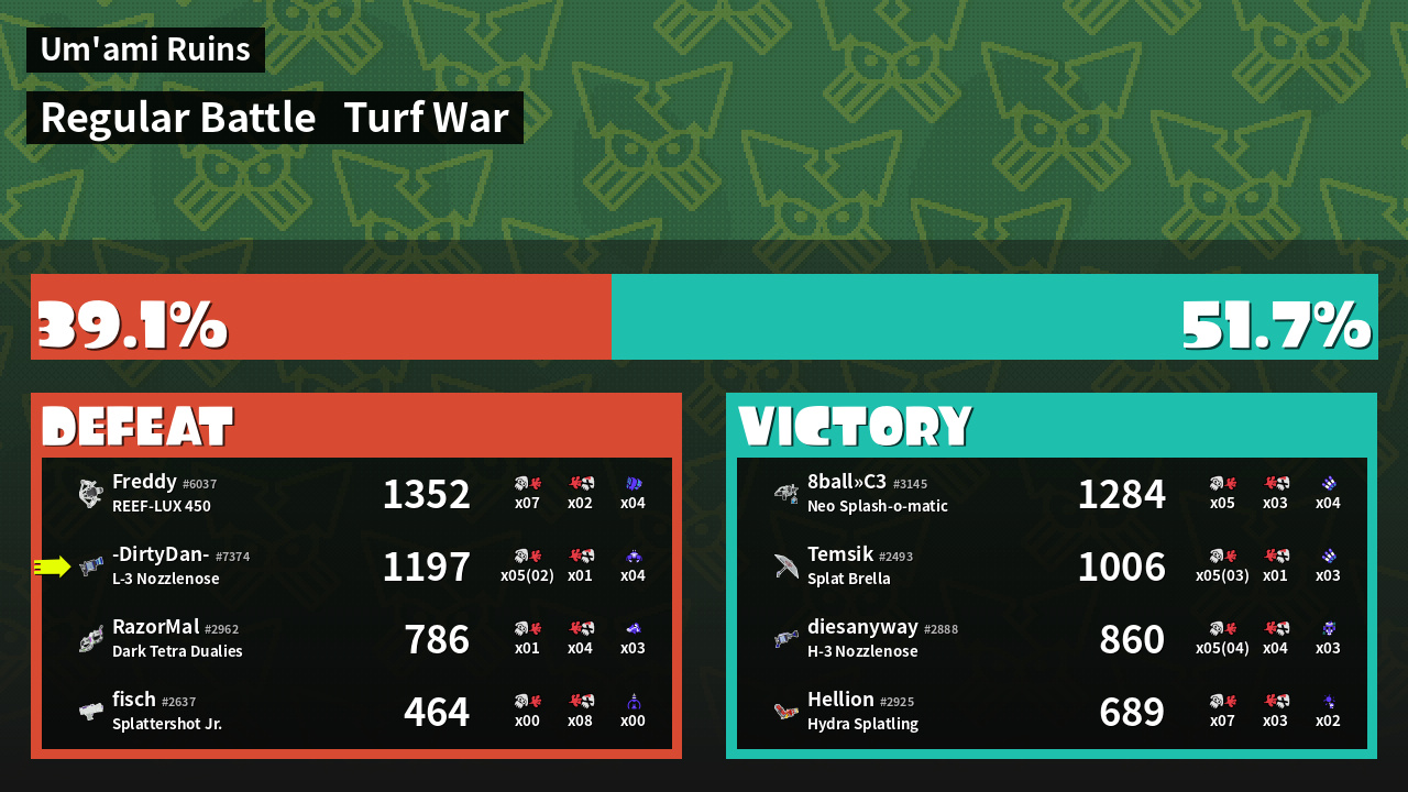 | Medals | #1 Popular Target #1 Splat Assister #1 Crab Tank User | ||