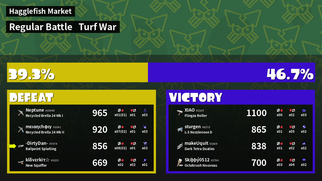 | Mode | Turf War - Regular Battle | ||