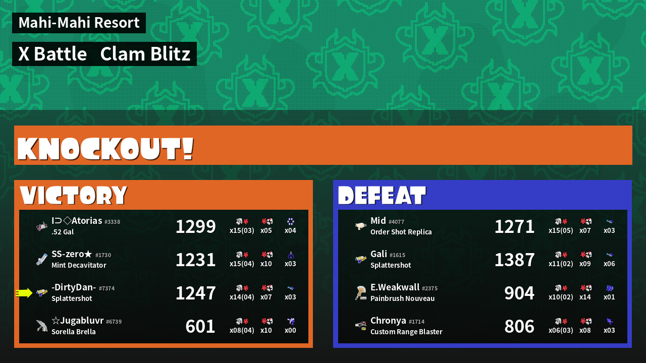 | Mode | Clam Blitz - X Battle | ||