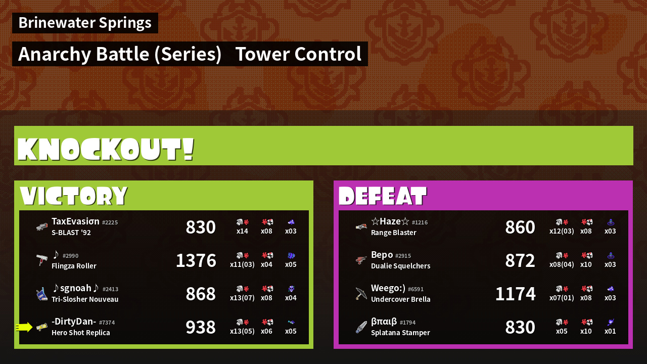| Medals | #1 Trizooka User #2 Overall Splatter #2 Turf Inker | ||