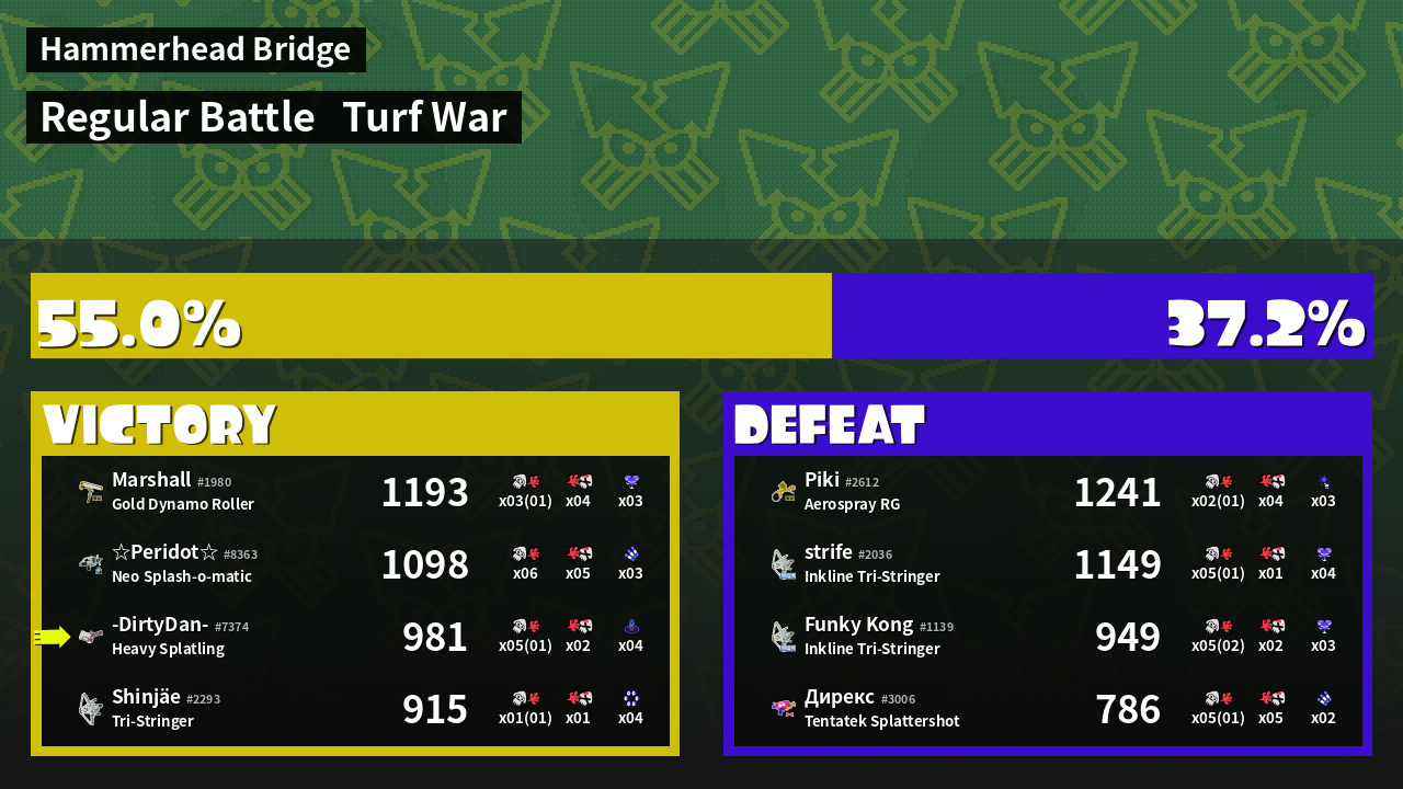 | Medals | #1 Popular Target #1 Splat Assister #1 Ground Traveler | ||