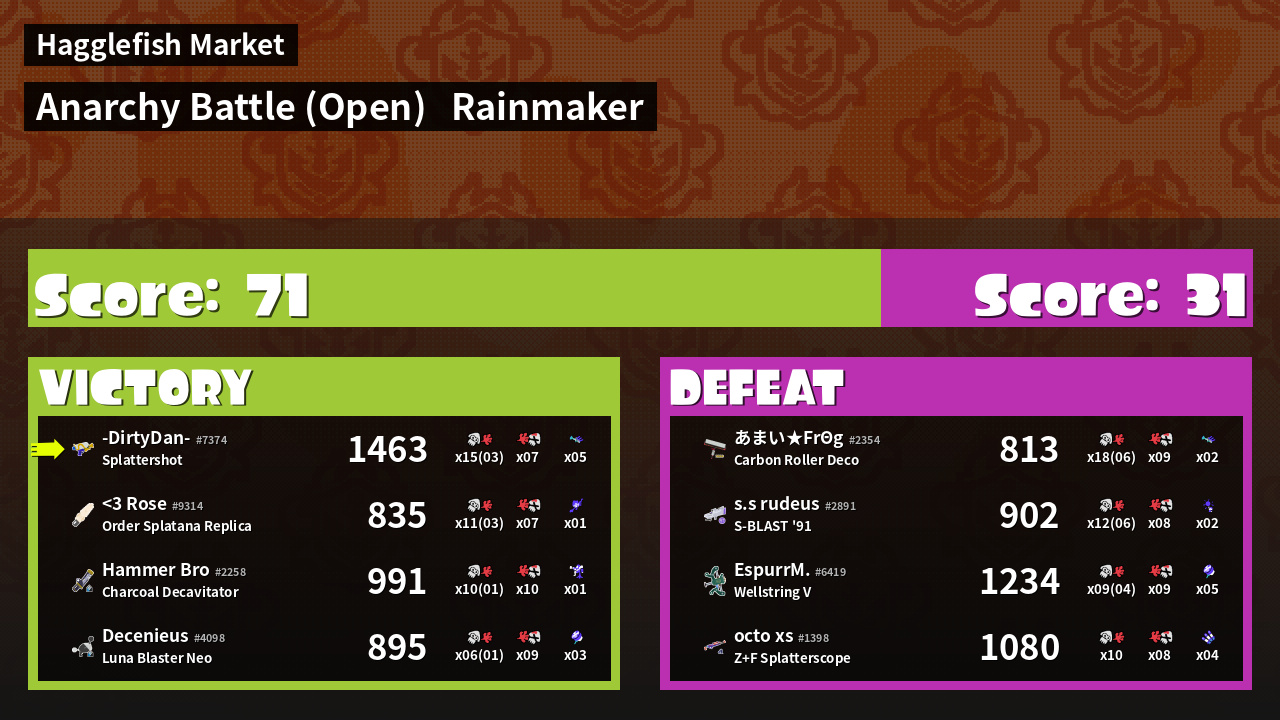 | Mode | Rainmaker - Anarchy Battle (Open) | ||