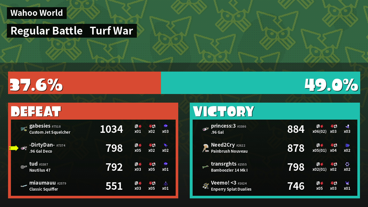 | Medals | #1 Overall Splatter #1 Popular Target #1 Enemy Splatter | ||