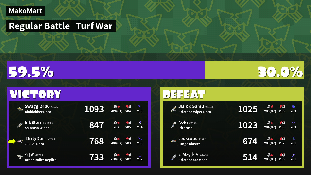 | Mode | Turf War - Regular Battle | ||