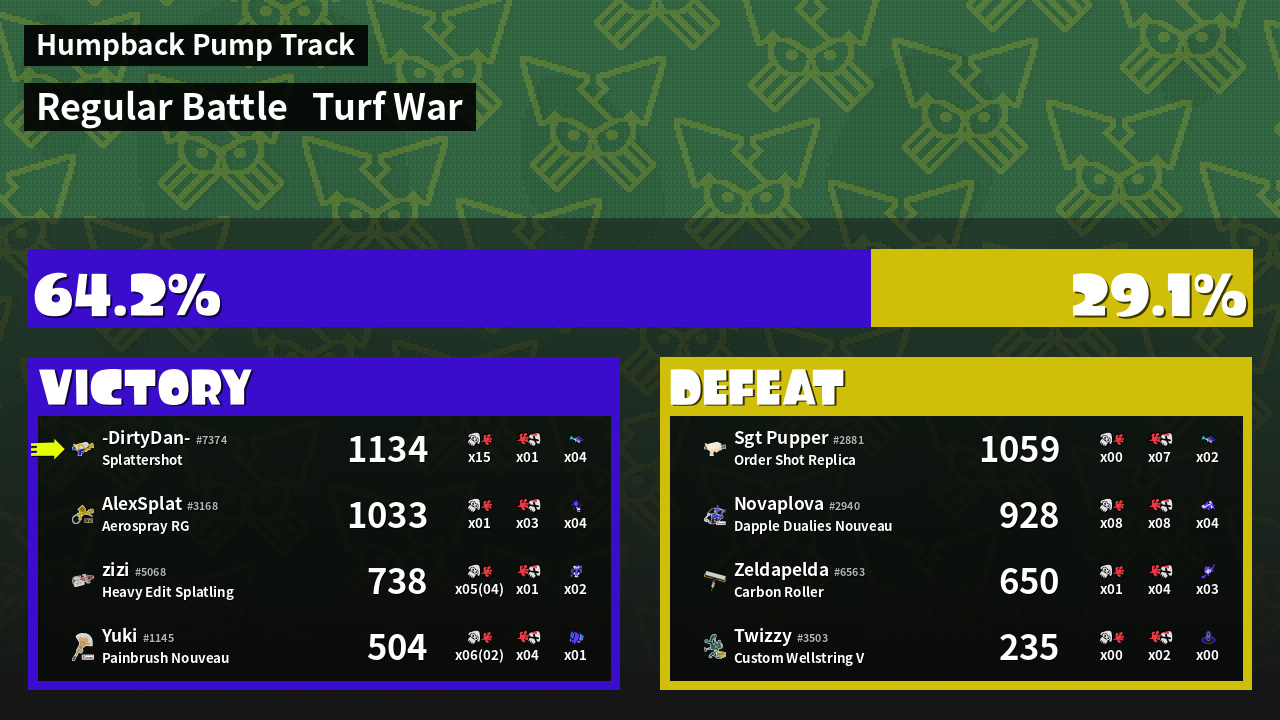 | Mode | Turf War - Regular Battle | ||