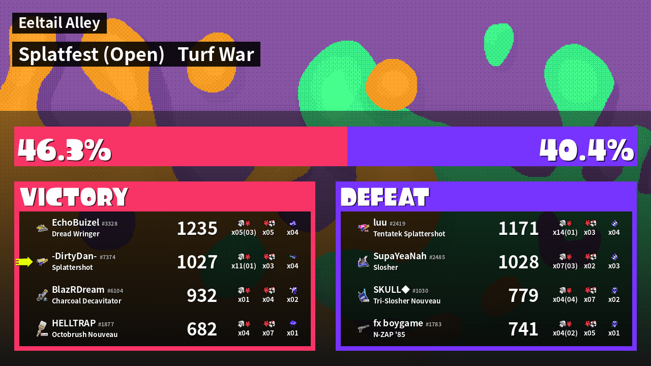 | Medals | #1 Overall Splatter #1 Popular Target #1 Enemy Splatter | ||