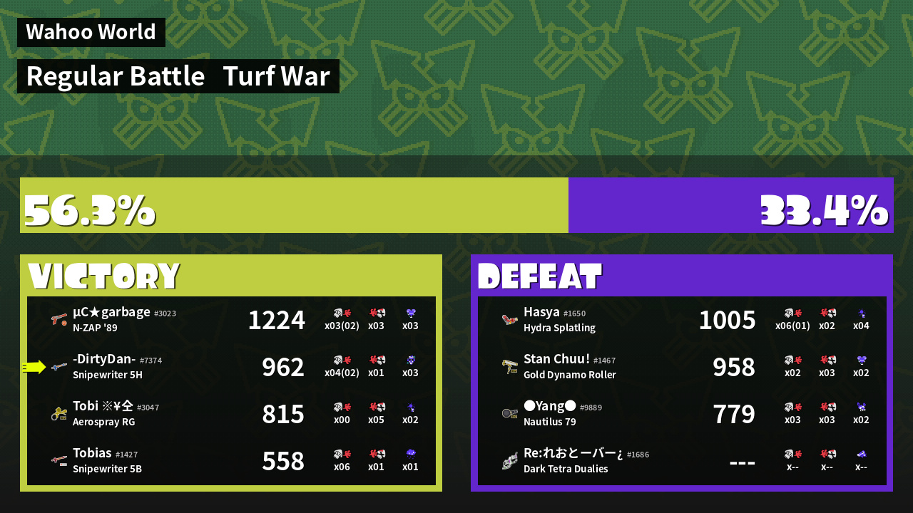 | Mode | Turf War - Regular Battle | ||