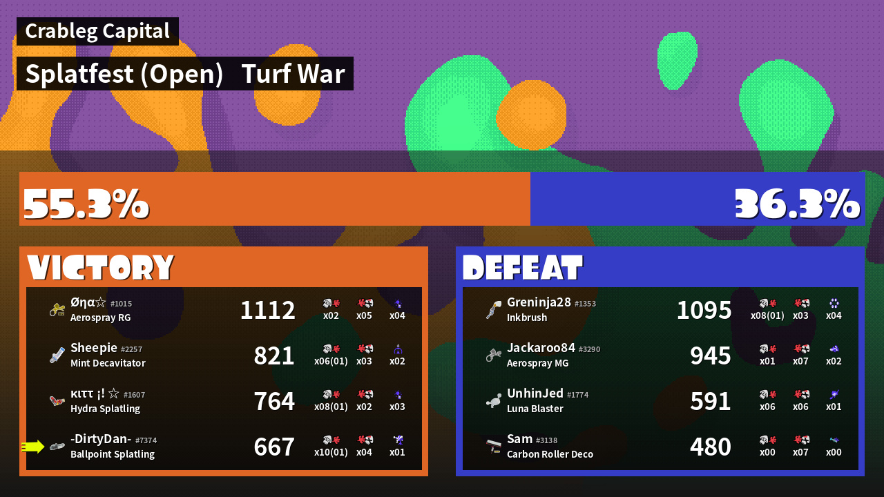 | Medals | #1 Overall Splatter #1 Super Jump Spot #1 Enemy Splatter | ||