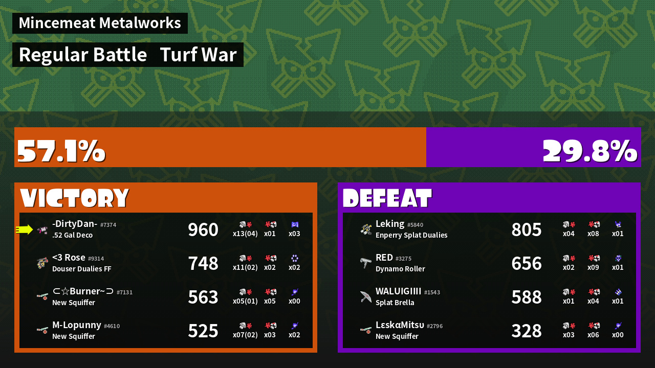 | Mode | Turf War - Regular Battle | ||