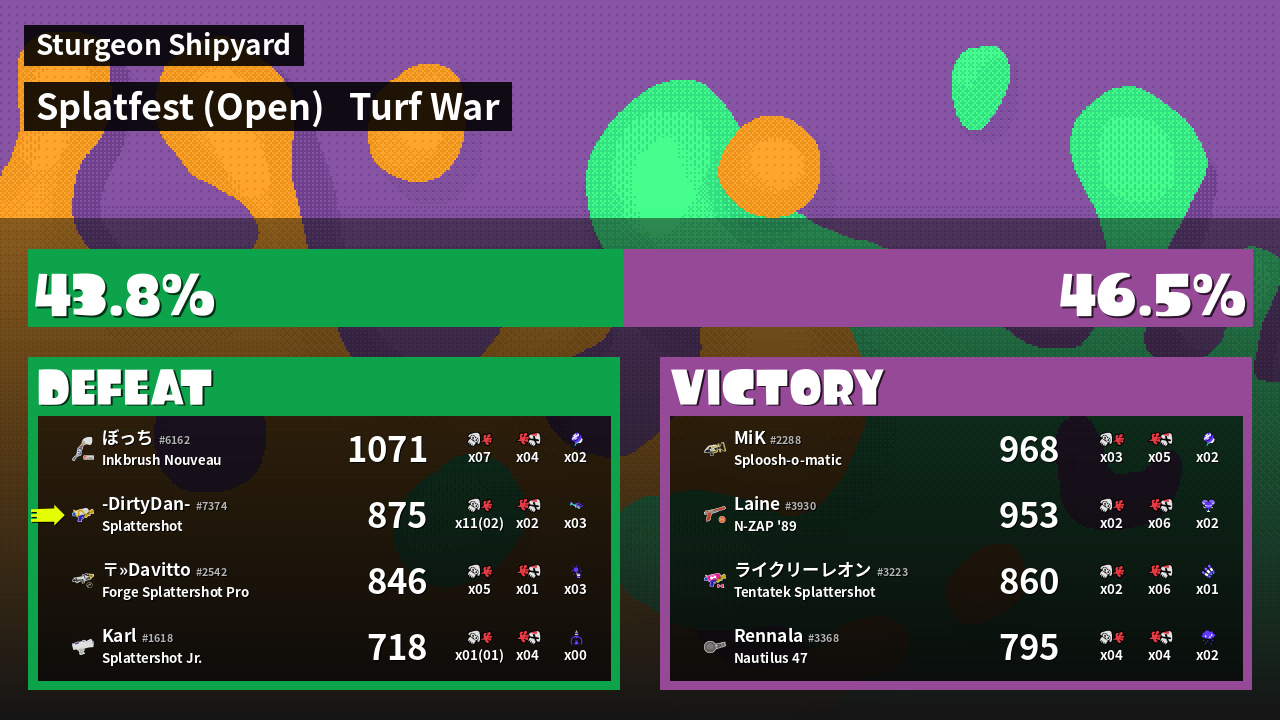| Mode | Turf War - Splatfest (Open) | ||