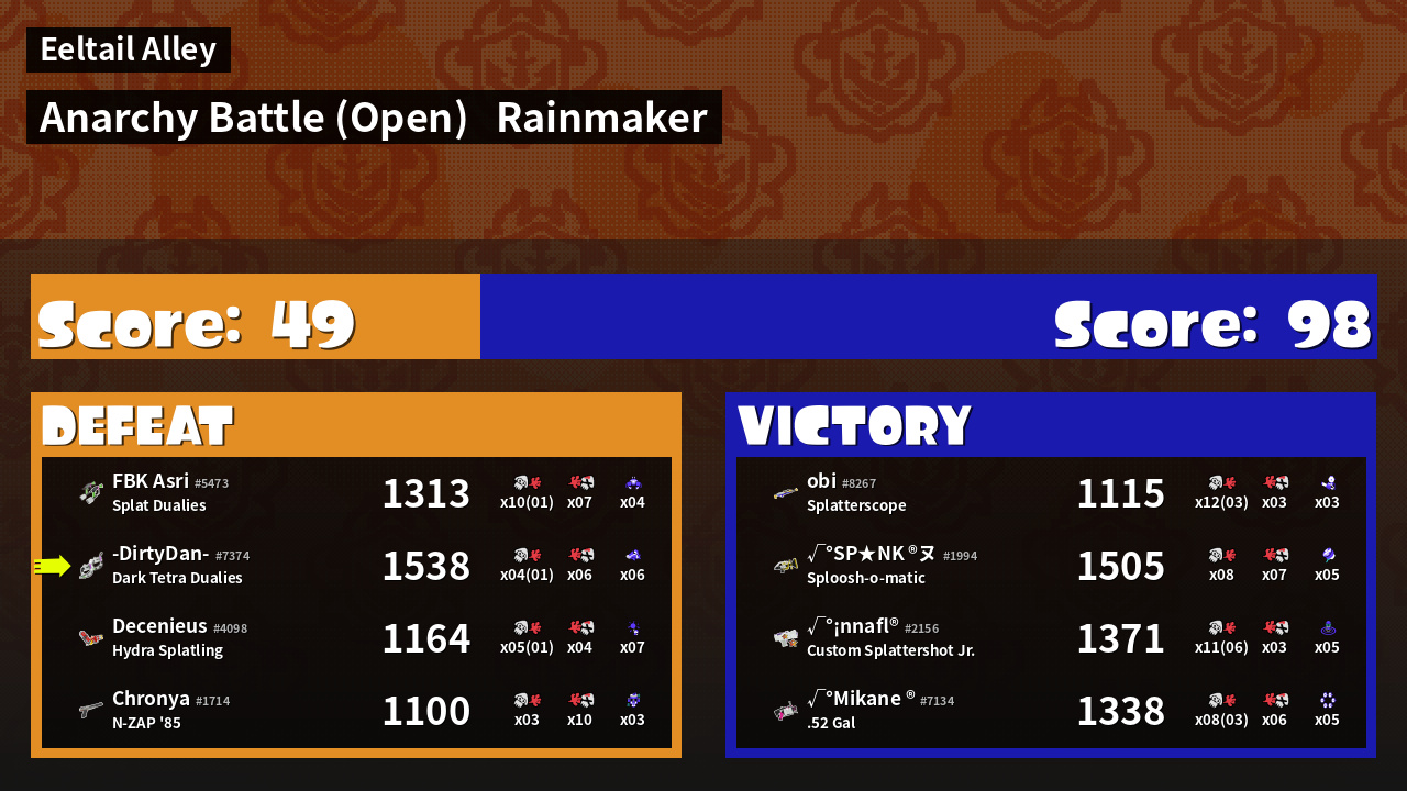 | Mode | Rainmaker - Anarchy Battle (Open) | ||