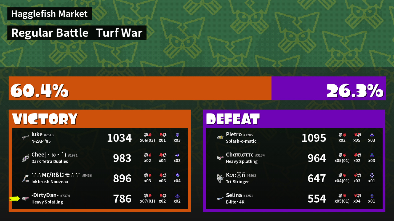 | Mode | Turf War - Regular Battle | ||