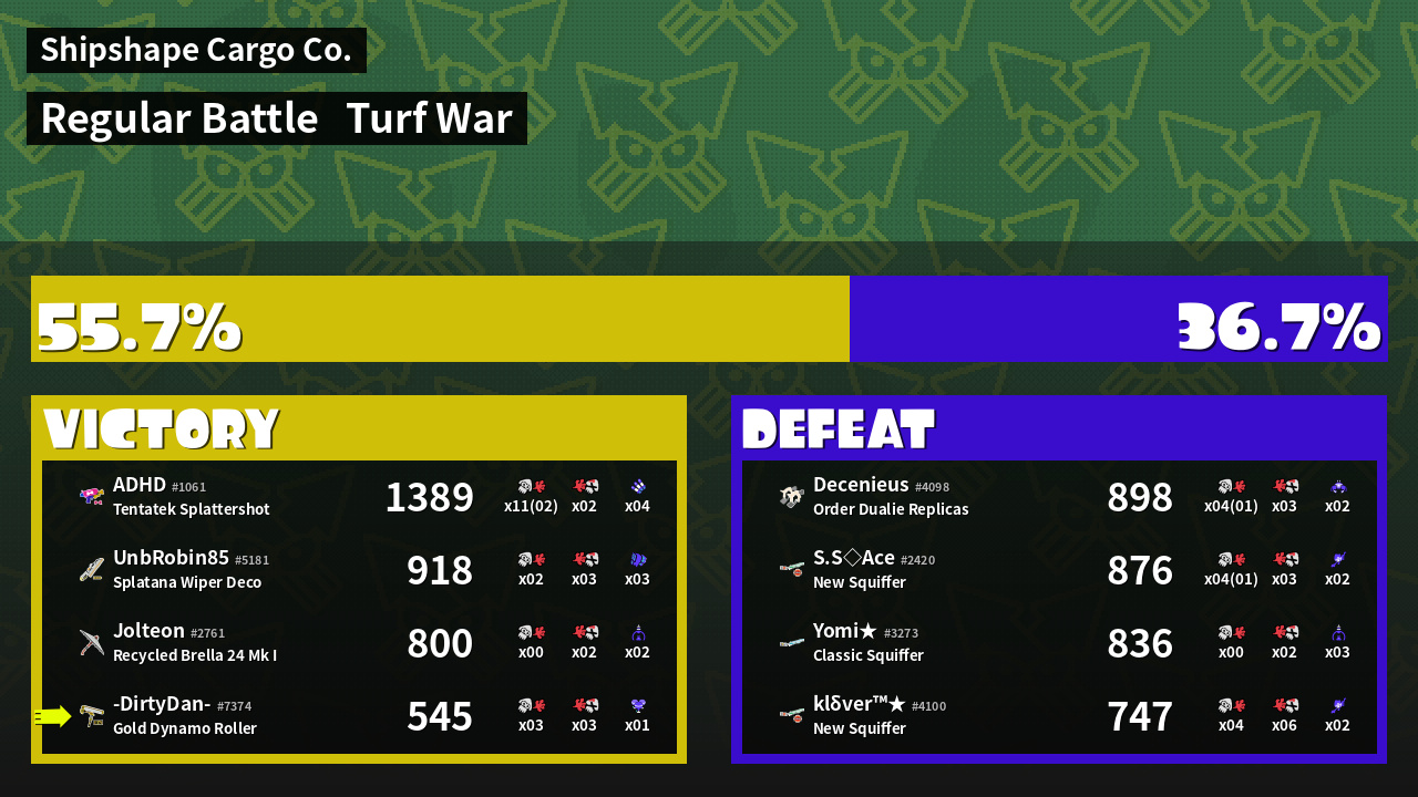 | Mode | Turf War - Regular Battle | ||