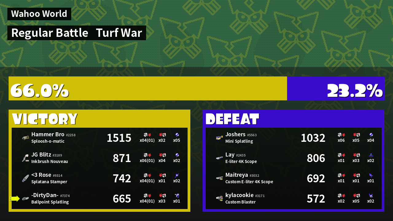 | Medals | #1 Splat Assister #1 Base Defender #2 Overall Splatter | ||