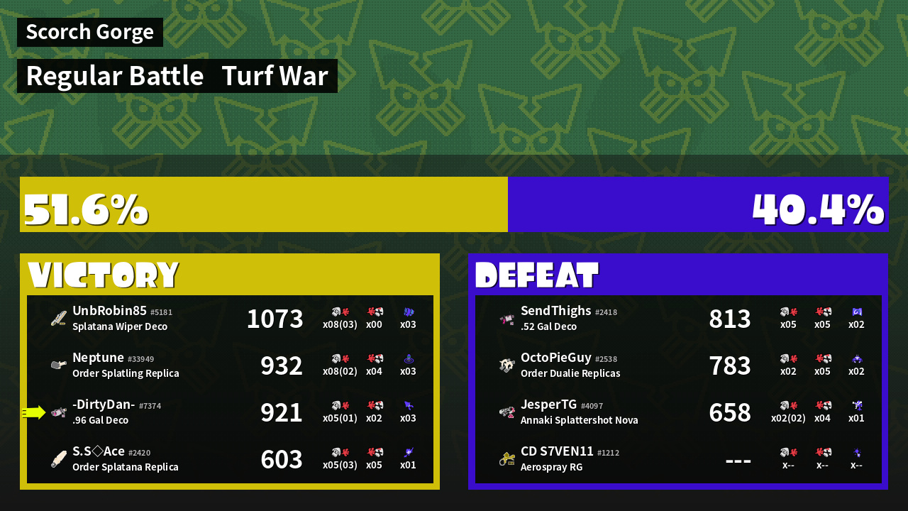 | Mode | Turf War - Regular Battle | ||