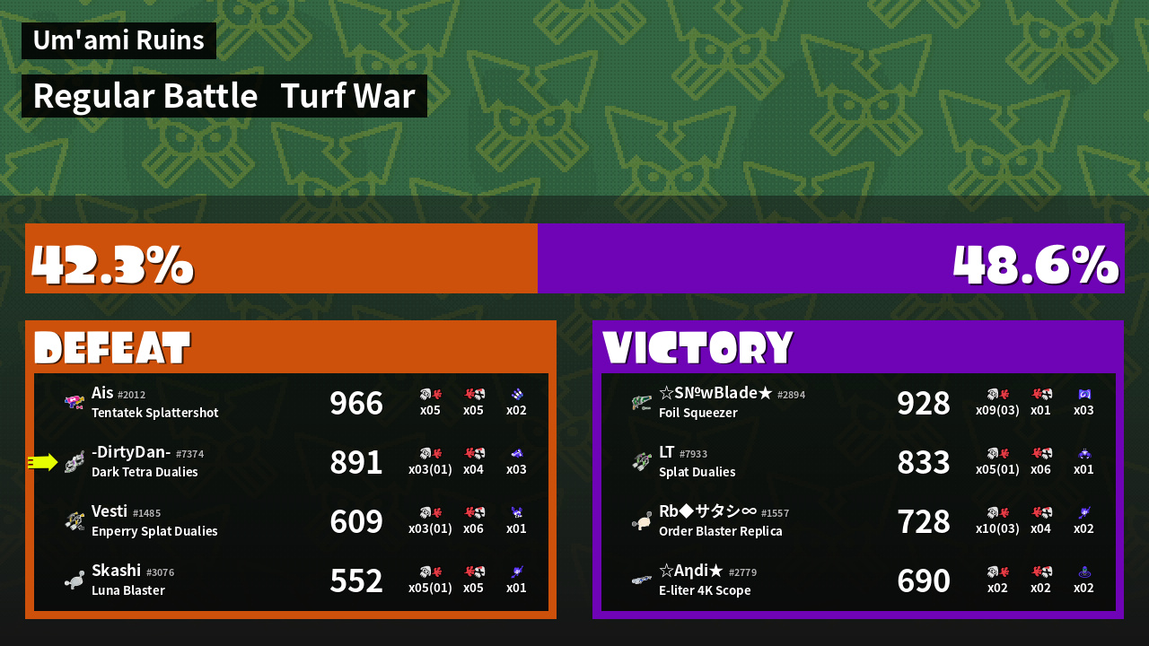 | Mode | Turf War - Regular Battle | ||