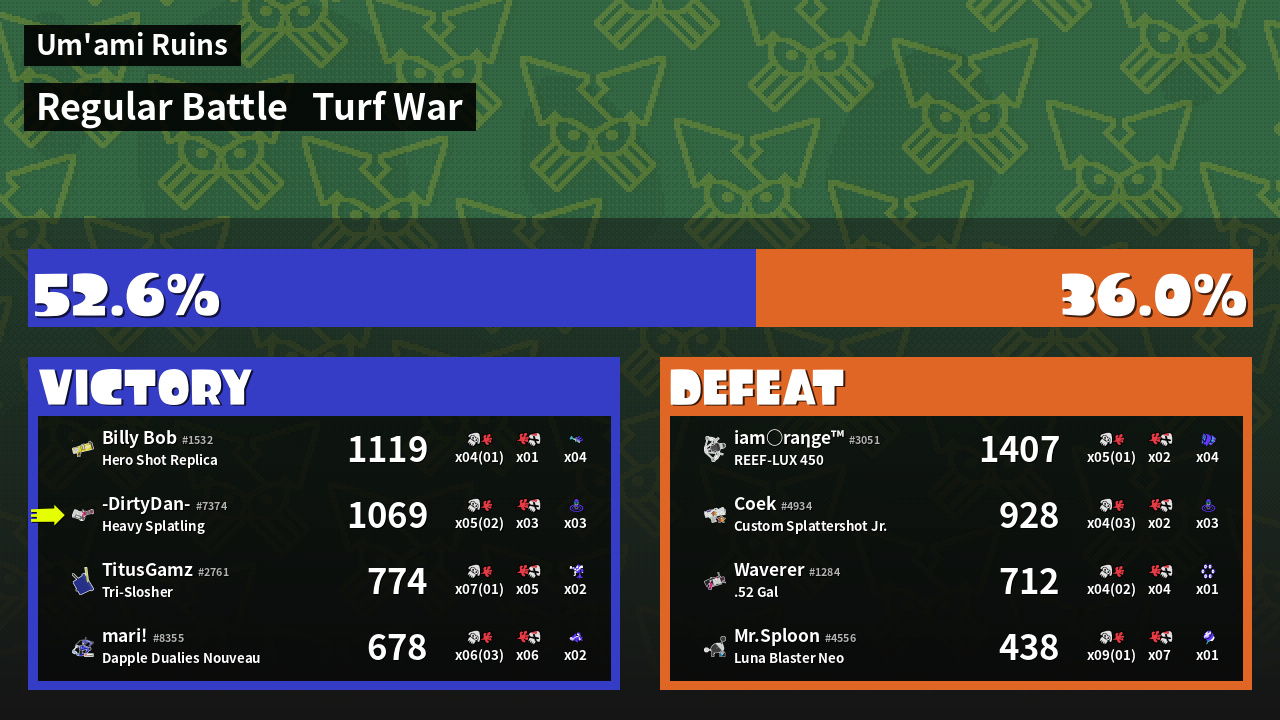 | Mode | Turf War - Regular Battle | ||