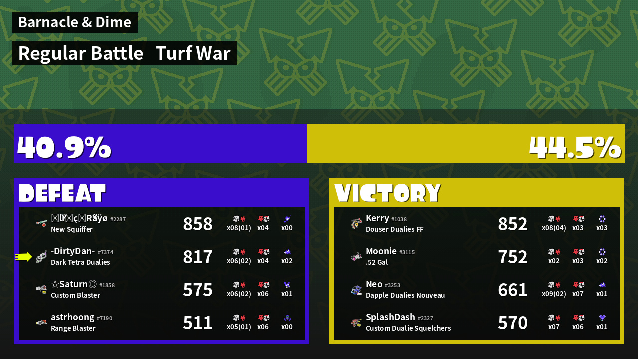 | Medals | #1 Home-Base Inker #1 Enemy-Base Inker #1 Splat Assister | ||