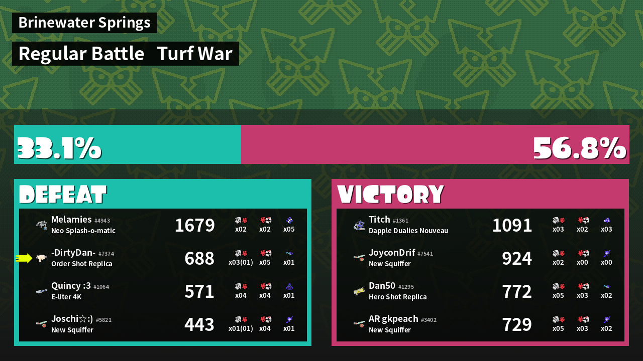 | Medals | #1 Splat Assister #1 Base Defender #1 Trizooka User | ||