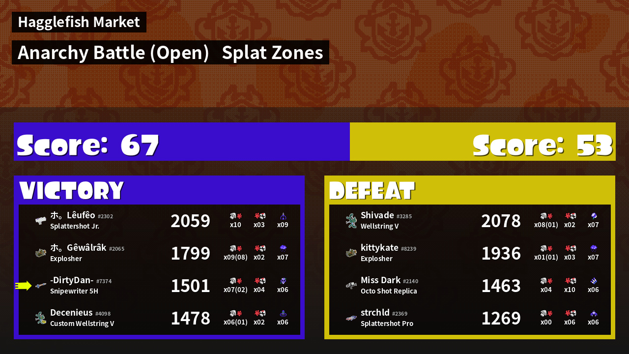 | Mode | Splat Zones - Anarchy Battle (Open) | ||