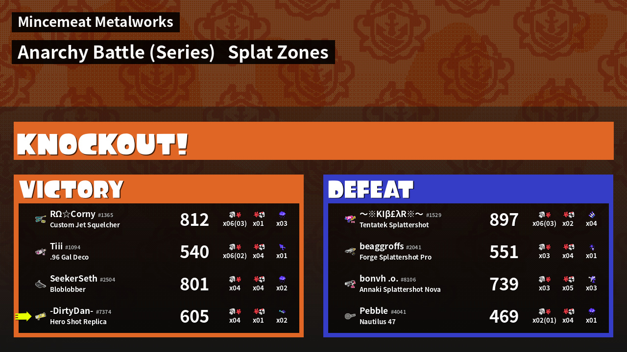| Medals | #1 Enemy Splatter #1 Ink Consumer | ||