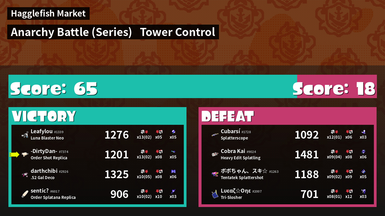 | Medals | #1 Overall Splatter #1 Score Booster #1 Enemy Splatter | ||
