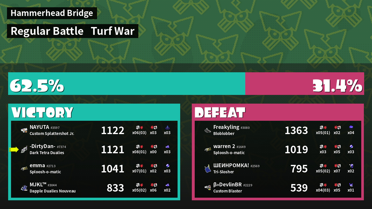 | Medals | #1 Overall Splatter #1 Super Jump Spot #1 Enemy Splatter | ||