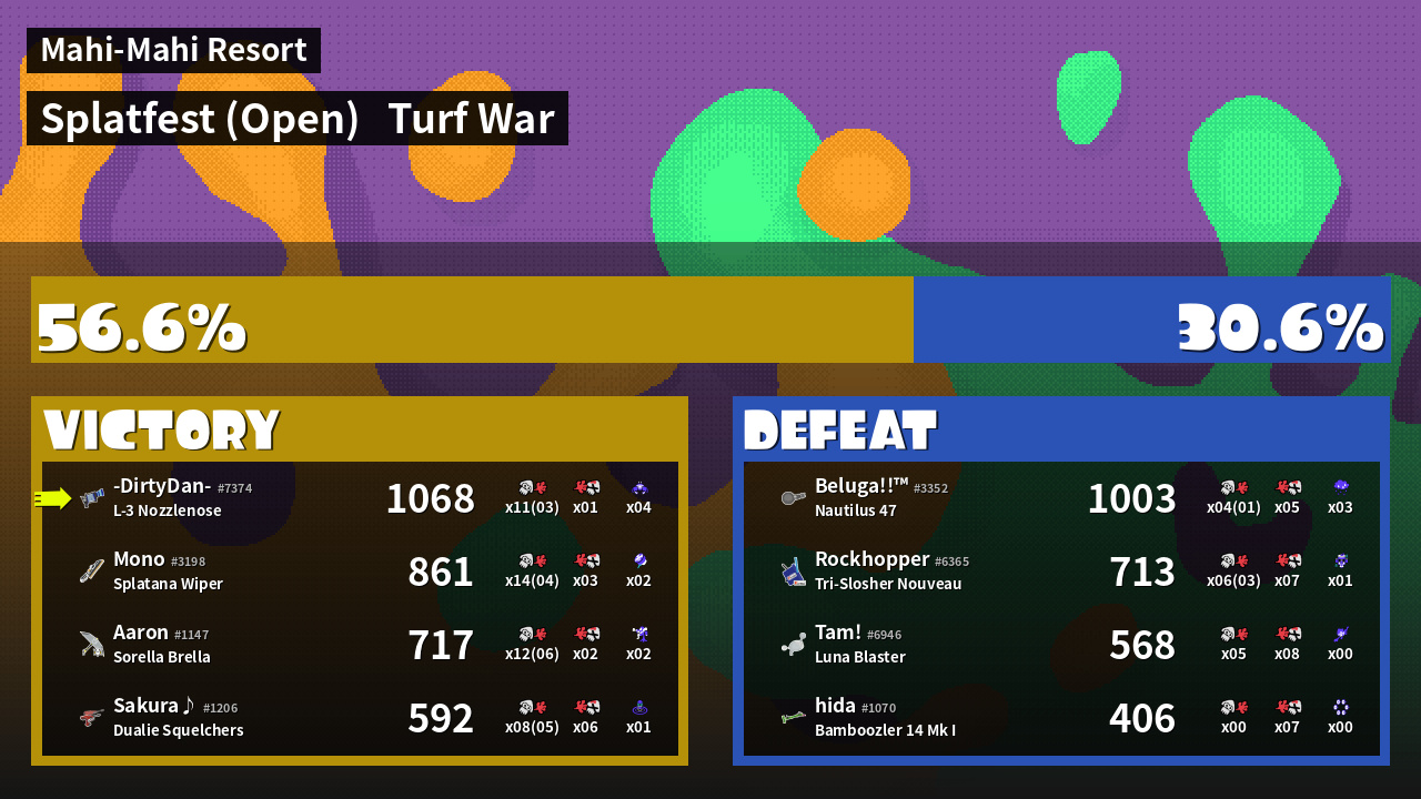 | Medals | #1 Turf Inker #1 Crab Tank User #2 Home-Base Inker | ||