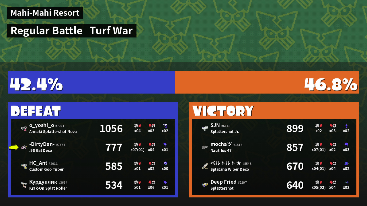 | Mode | Turf War - Regular Battle | ||