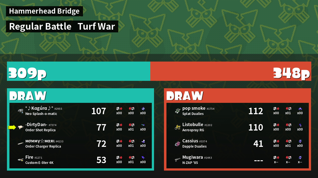 | Mode | Turf War - Regular Battle | ||
