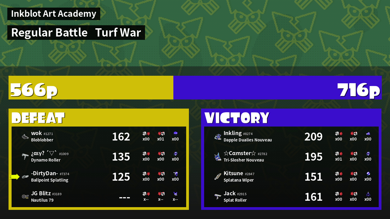 | Mode | Turf War - Regular Battle | ||