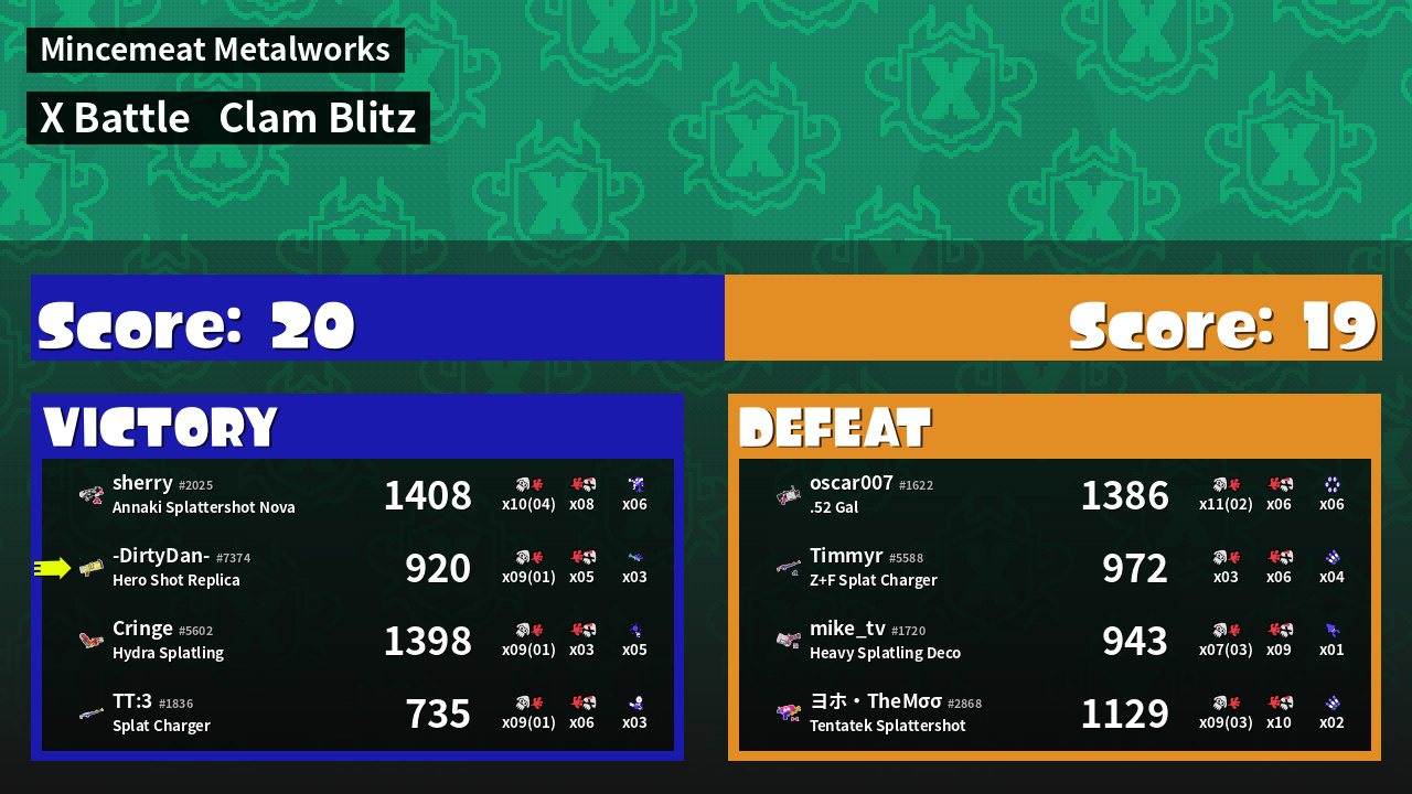 | Mode | Clam Blitz - X Battle | ||