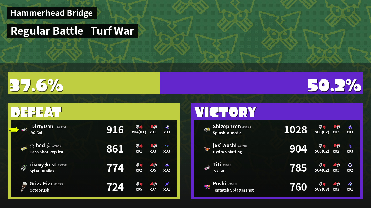 | Mode | Turf War - Regular Battle | ||