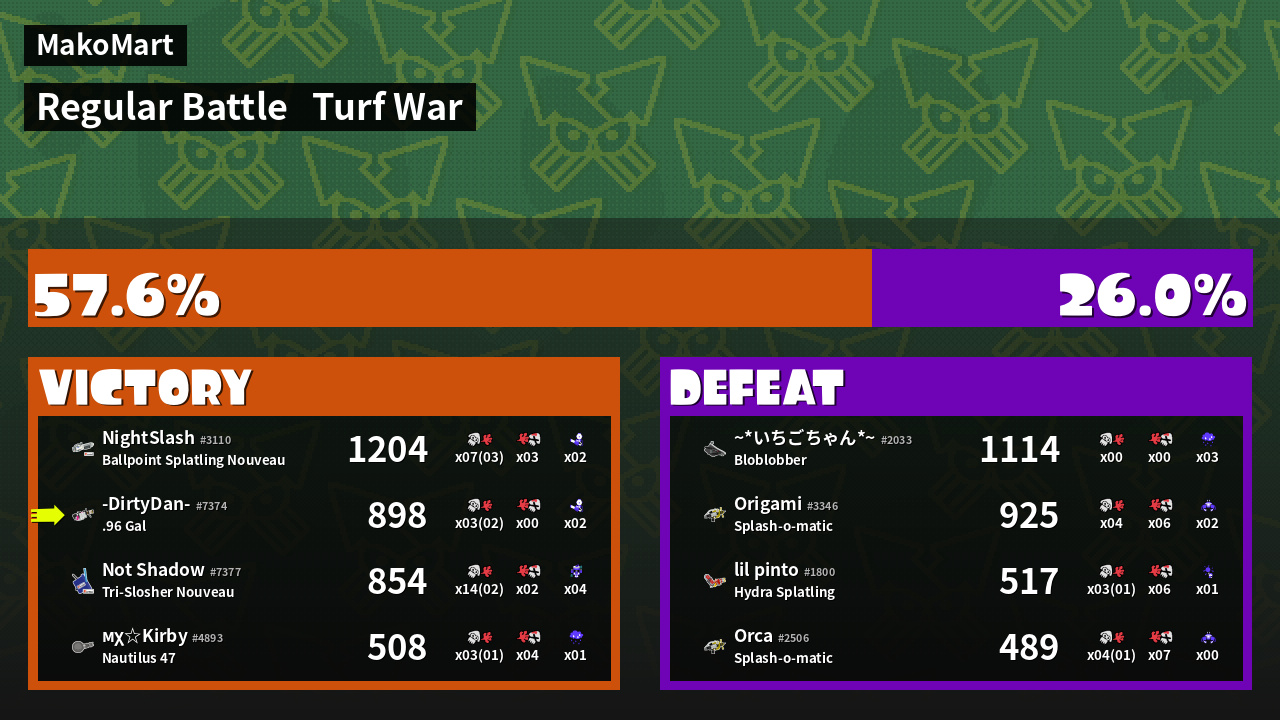 | Mode | Turf War - Regular Battle | ||