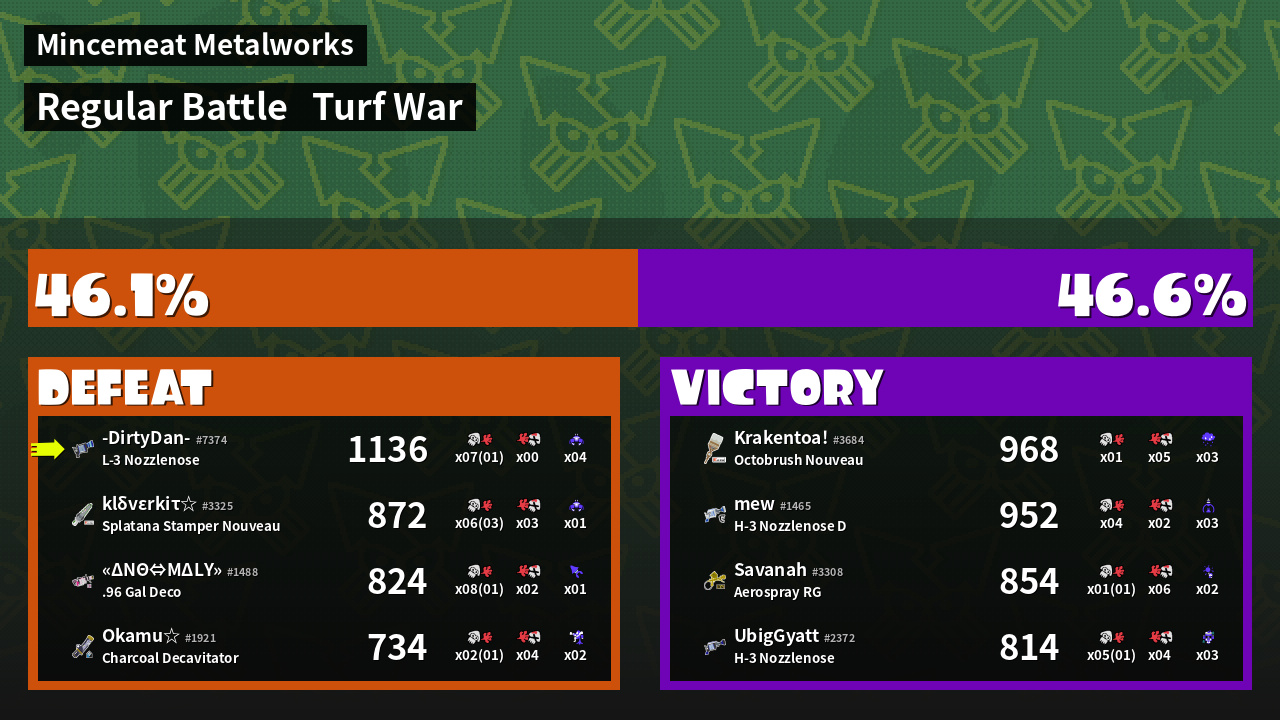 | Medals | #1 Turf Inker #1 Home-Base Inker #1 Enemy-Base Inker | ||