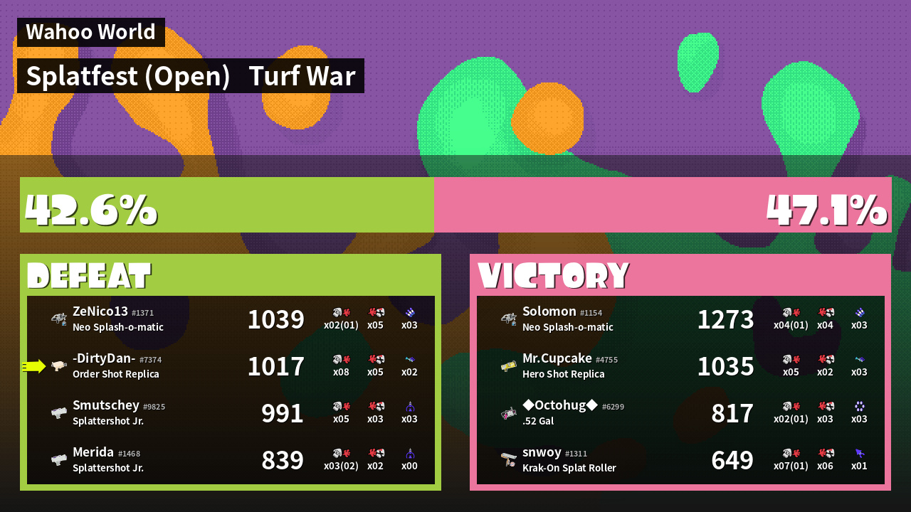 | Medals | #1 Overall Splatter #1 Popular Target #1 Enemy-Base Inker | ||