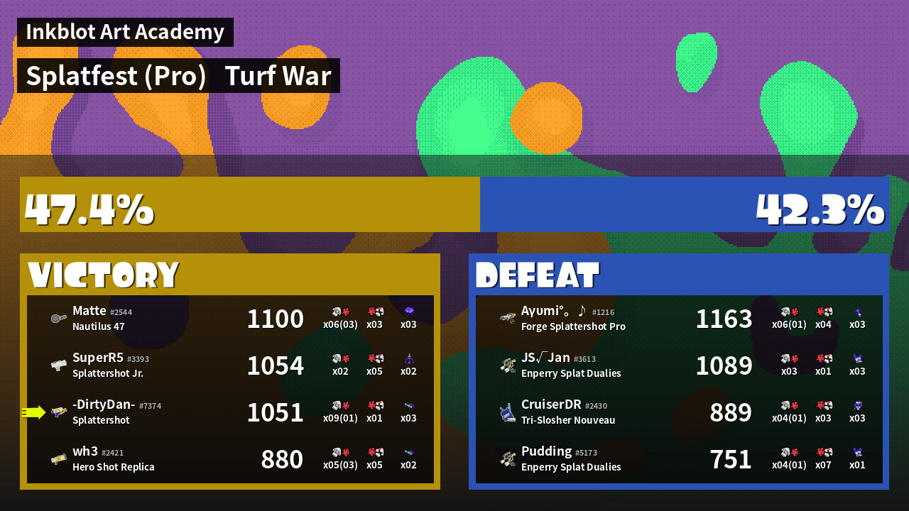| Mode | Turf War - Splatfest (Pro) | ||
