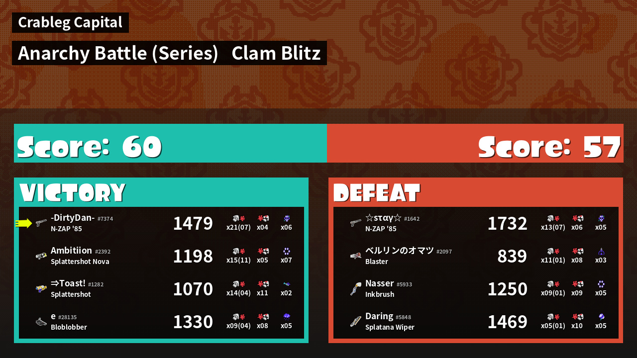 | Mode | Clam Blitz - Anarchy Battle (Series) | ||