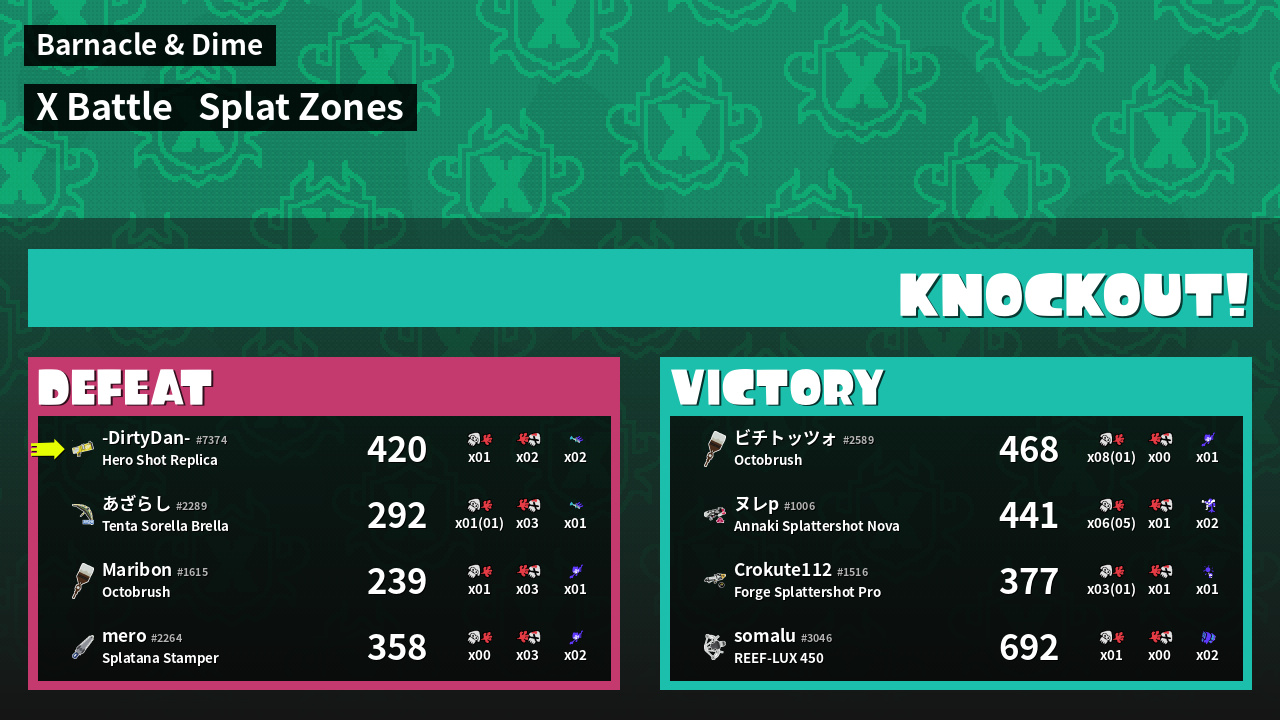 | Medals | #1 Overall Splatter #1 Turf Inker #1 Enemy Splatter | ||