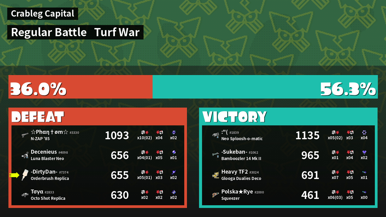 | Mode | Turf War - Regular Battle | ||