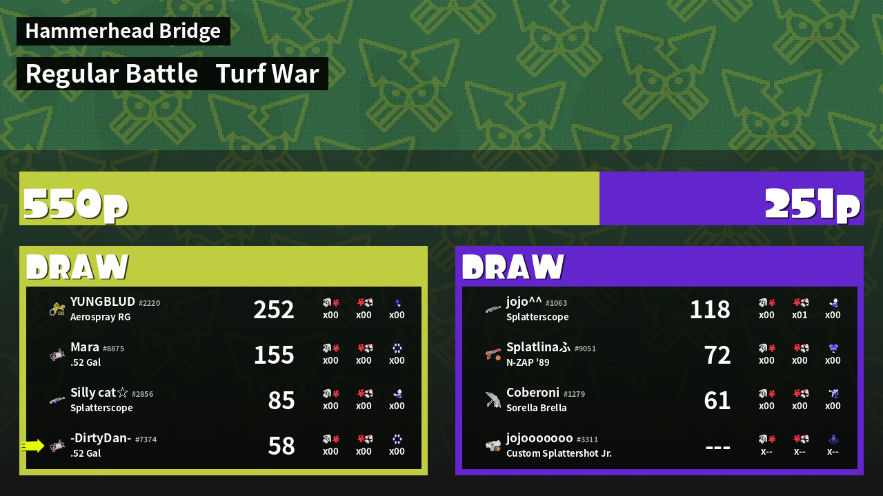 | Mode | Turf War - Regular Battle | ||